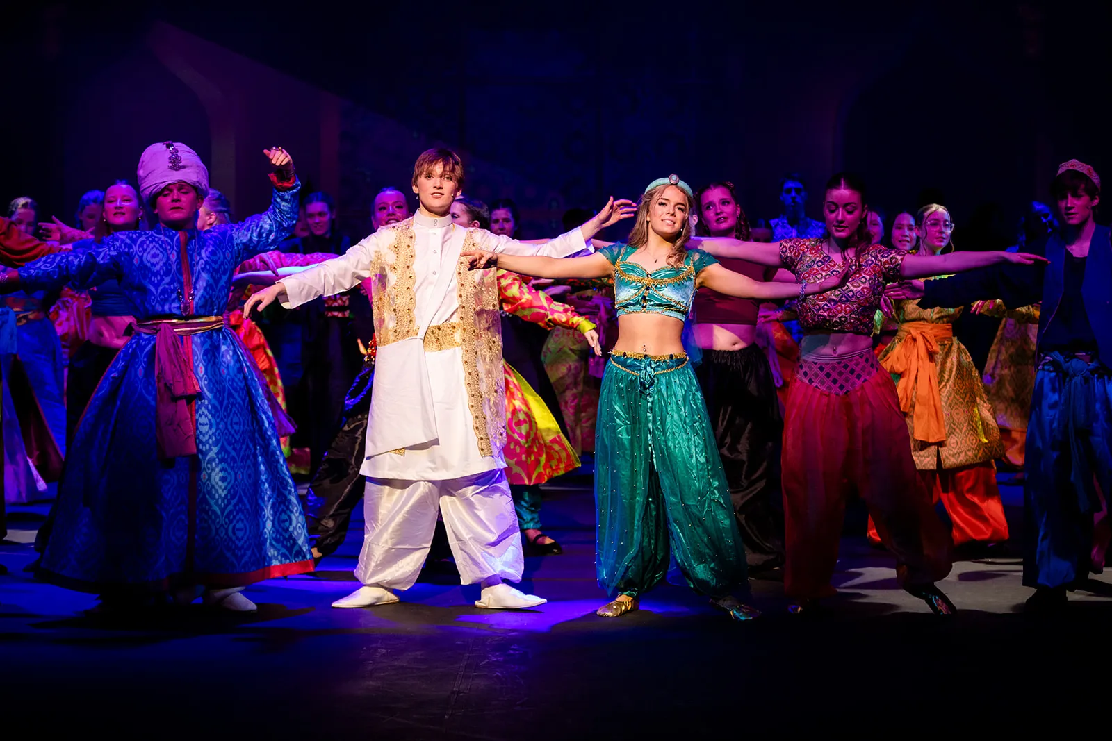 With 68 students involved from Years 7 to 12, bringing this fantastical setting to life was no small feat. Audiences were swept from the bustling marketplace to the golden desert, through the mysterious Cave of Wonders, and into the opulent palace—before taking flight on a magic carpet during the show’s iconic number, A Whole New World.